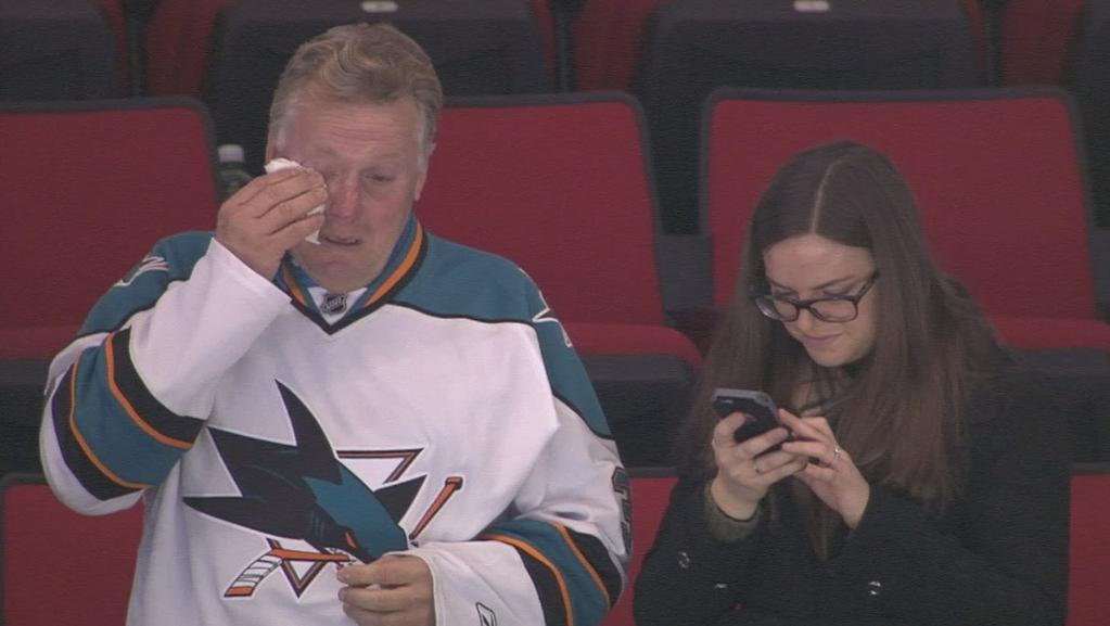 This is what sports are all about. Troy Grosenick's father Scott, after his son earns #sjsharks a shutout win. pic.twitter.com/FXE0U7xOUj